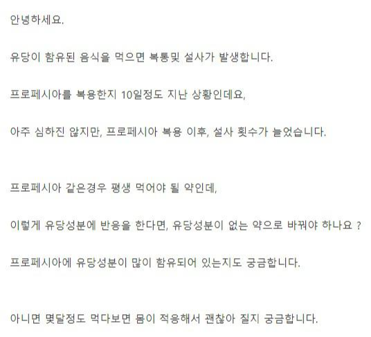 소화효소가 부족해서 우유 등 유제품을 드시면 소화가 잘 안되고 설사를 하는 등의 증상을 가지고 계시는 유당불내증이 있는 분들은 피나스테리드의 유당 성분이 그런 증상을 일으킬 수 있다는 내용입니다.
