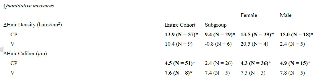 모발이식 및 탈모치료로 유명한 태국의 의사 패쏨바니치(Damkerng Pathomvanich)가 기존 탈모치료에 효과를 보지 못한 환자들을 대상으로 경구 미녹시딜을 처방해왔는데, 그 결과를 요약하면 다음과 같습니다.