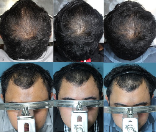 또 다른 연구로, 스페인의 지메네즈(Jimenez)등이 2019년에 발표한 내용인데, 41명의 남성에서 10명은 2.5mg, 31명은 5mg의 미녹시딜 정을 최소 6개월 이상 복용시켜서 전후를 사진으로 비교하였습니다. 41명 중 25명은 다른 치료(피나스테리드, 두타스테리드, 바르는 미녹시딜, 메조테라피 등)를 실험 전에 받았고, 16명은 다른 치료 없이 경구 미녹시딜만 복용하였습니다.