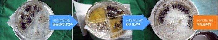 - 채취한 모낭을 보관하는 보존액 표면에 기름막이 형성됩니다.
