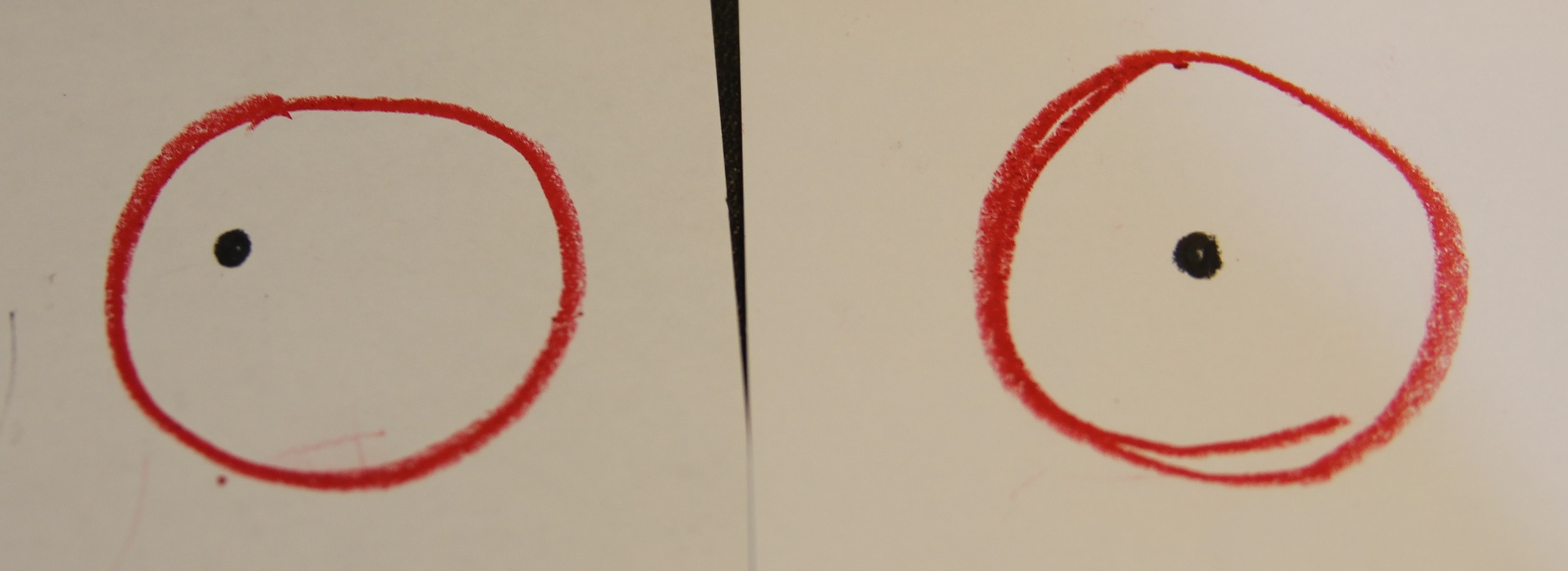 왼쪽의 그림은 검은 점(머리카락)과 붉은 원(장비의 원통)이 일치하지 않은 것을 의도하고 그린 것인데, 이럴 경우 모낭이 절단되거나 손상될 확률이 높아집니다. 반면 오른쪽은 센터링이 잘되었기 때문에 좋은 질의 모낭이 나올 가능성이 높아집니다.