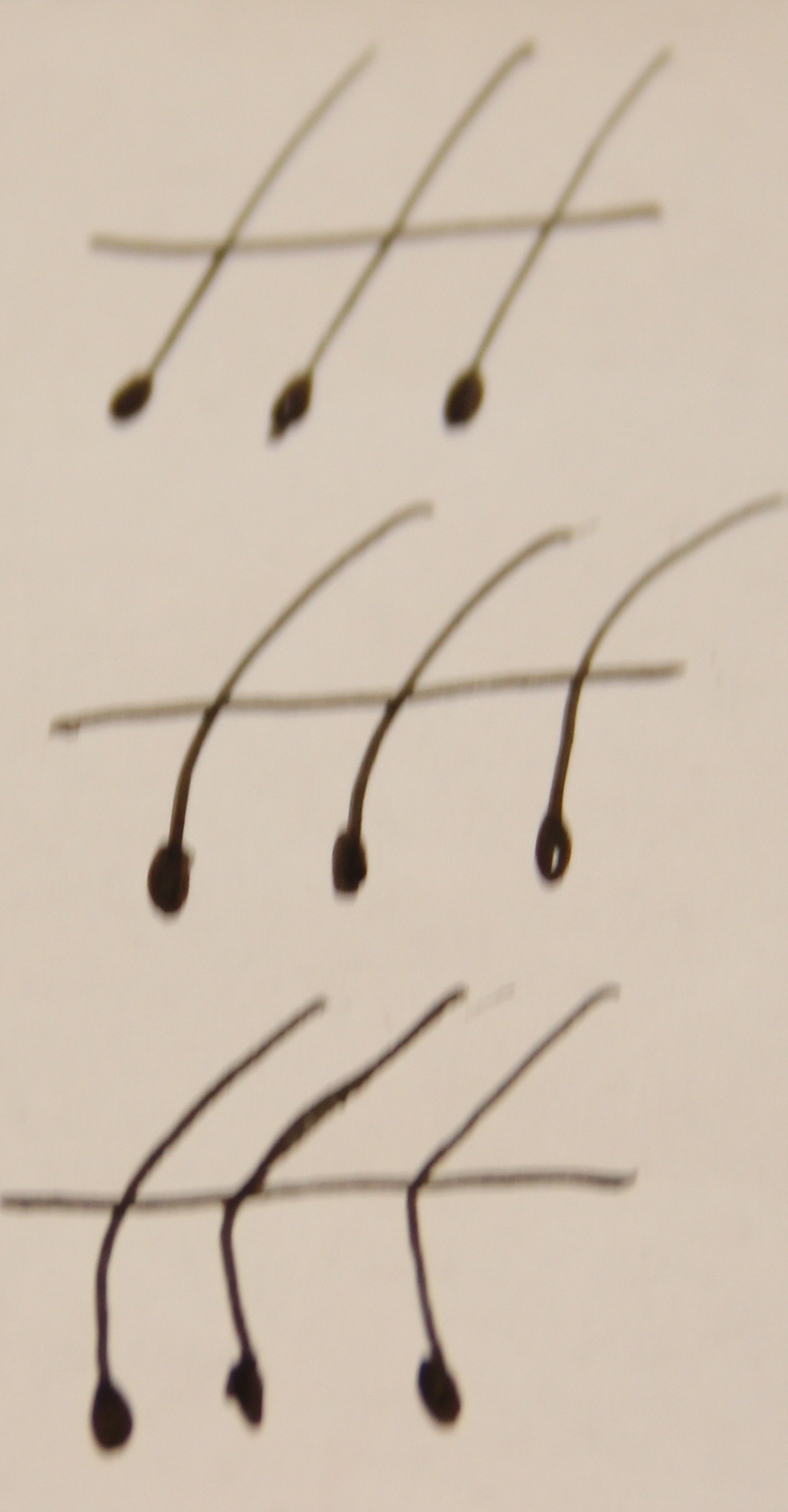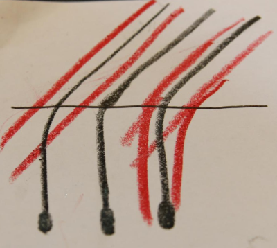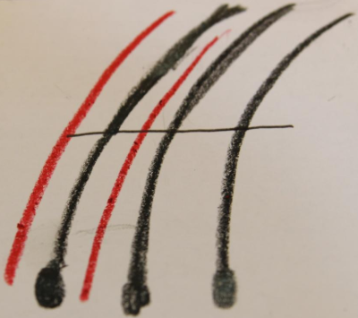 위 그림을 보시면 피부 바깥으로 나와있는 머리카락과 피부속에 있는 머리카락이 어떤 각도를 이루는지에 따라 셋으로 나눠보았습니다.