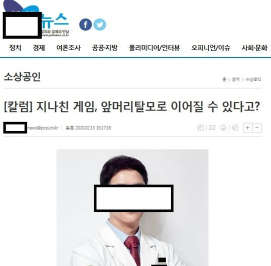 "결과적으로 평소보다 과도한 열이 앞머리로 몰리면서 앞머리 모발의 모근 주변으로 열이 몰리는 가운데 모근 주변의 비정상적인 열로 인해 모공이 넓어지고 모발의 생장주기가 단축되면서 탈모가 발생할 수 있다. 머리를 식히고 휴식하기 위해 했던 게임이 오히려 머리를 더 뜨겁게 만드는 아이러니한 상황으로 이어진 것이다."