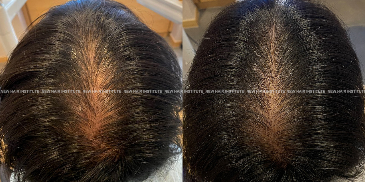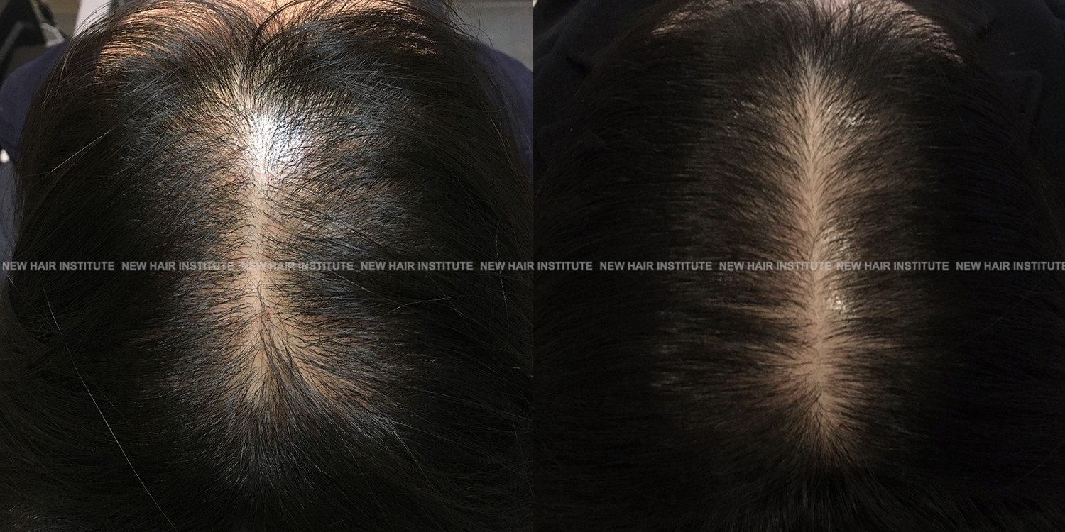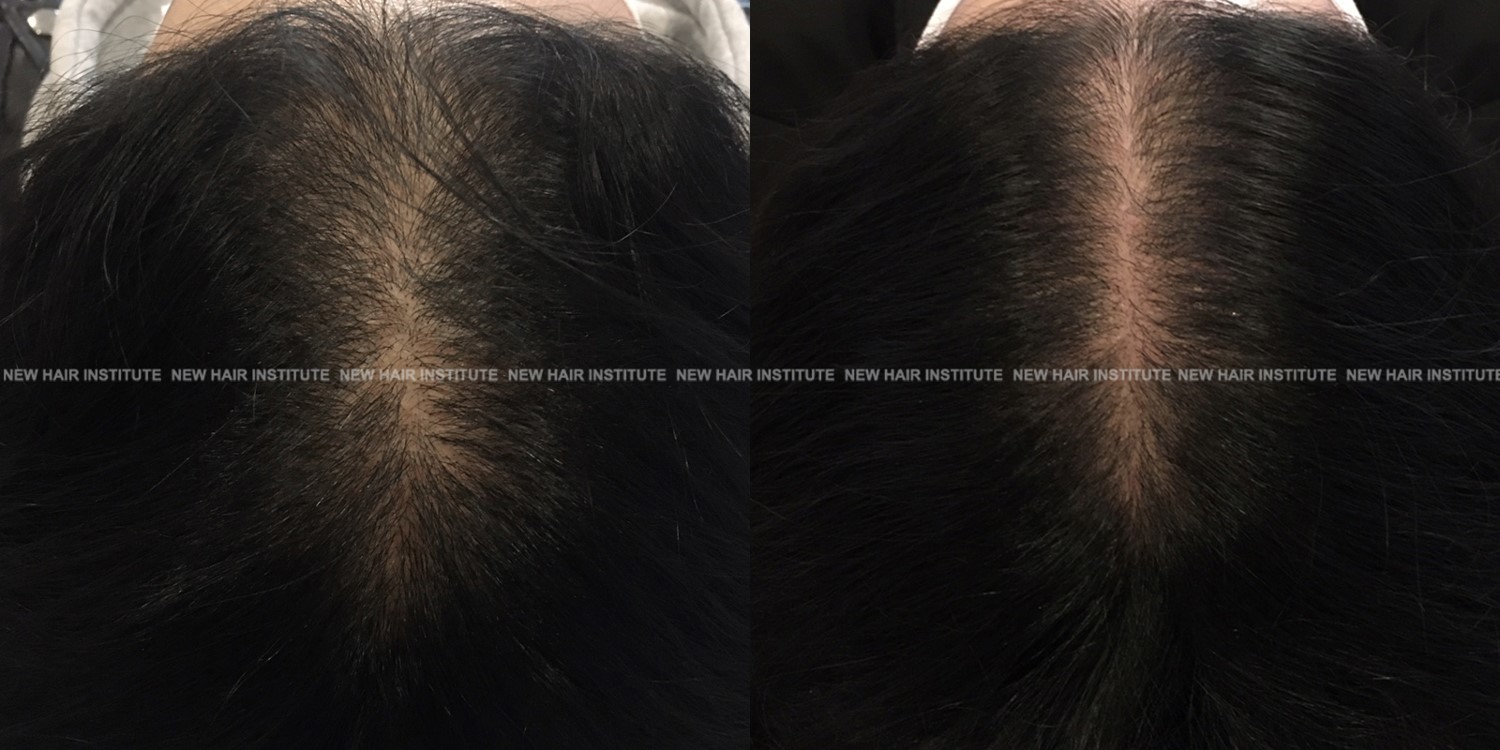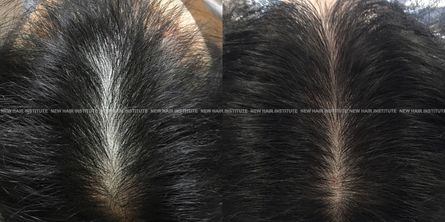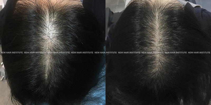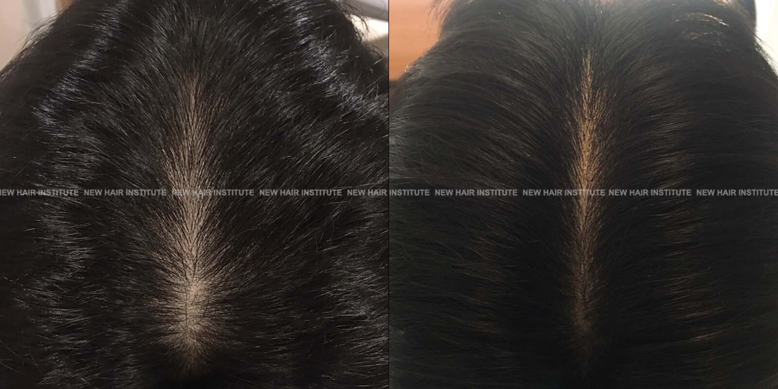 확산성 탈모, 여성형 탈모, 스트레스성 탈모 등에서는 치료약의 종류가 남성에서보다 한정되기 때문에 모낭주사 치료의 필요성이 좀 더 높아집니다. 바르는 약 미녹시딜과 모발 영양제인 맥주효모 정도가 여성 탈모에서 쓸 수 있는 약들인데 이 약만으로 큰 치료효과를 기대하기는 어렵기 때문입니다. (아래 사례 사진에 여성 탈모 사례를 보실 수 있습니다.)
