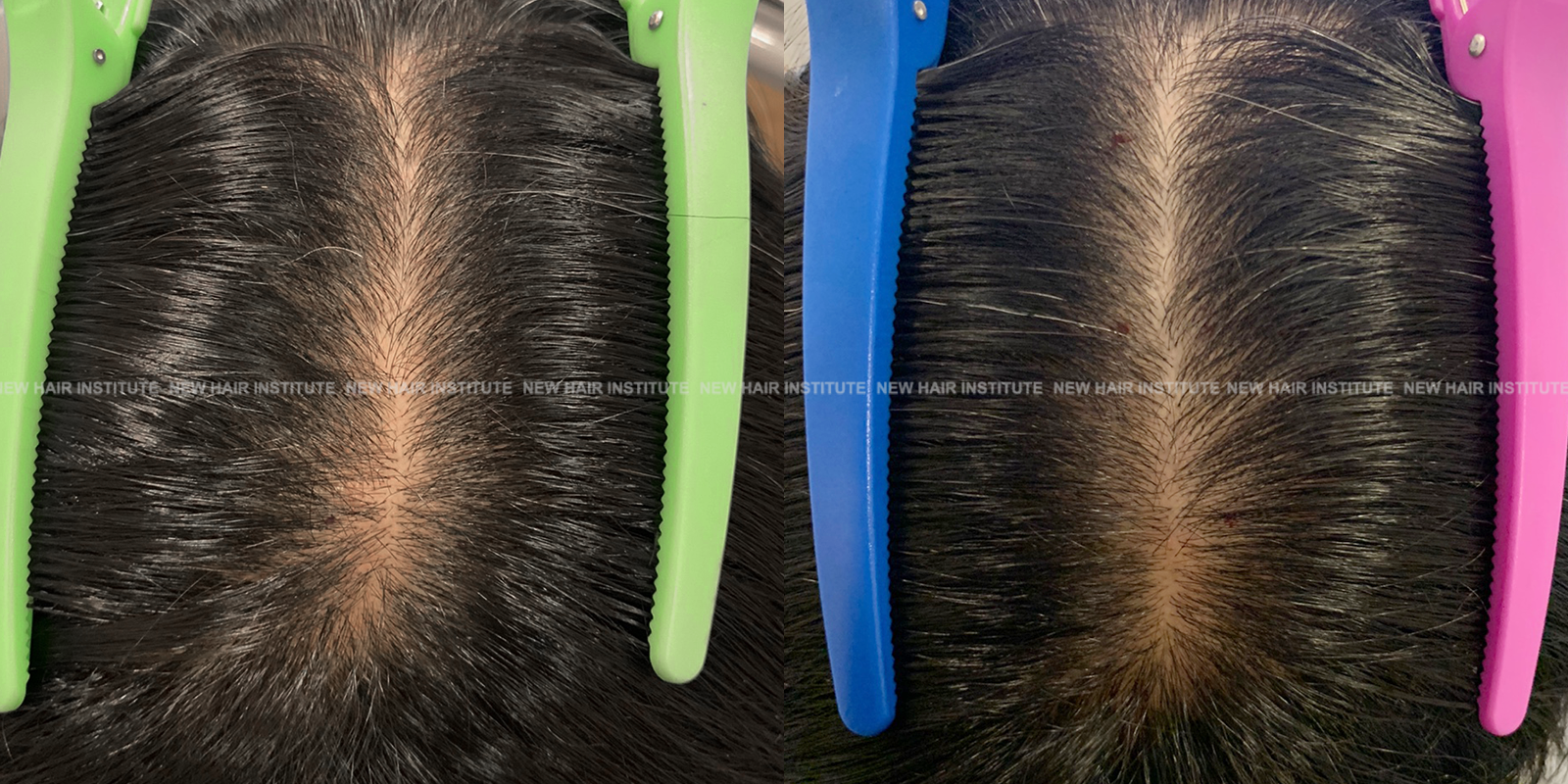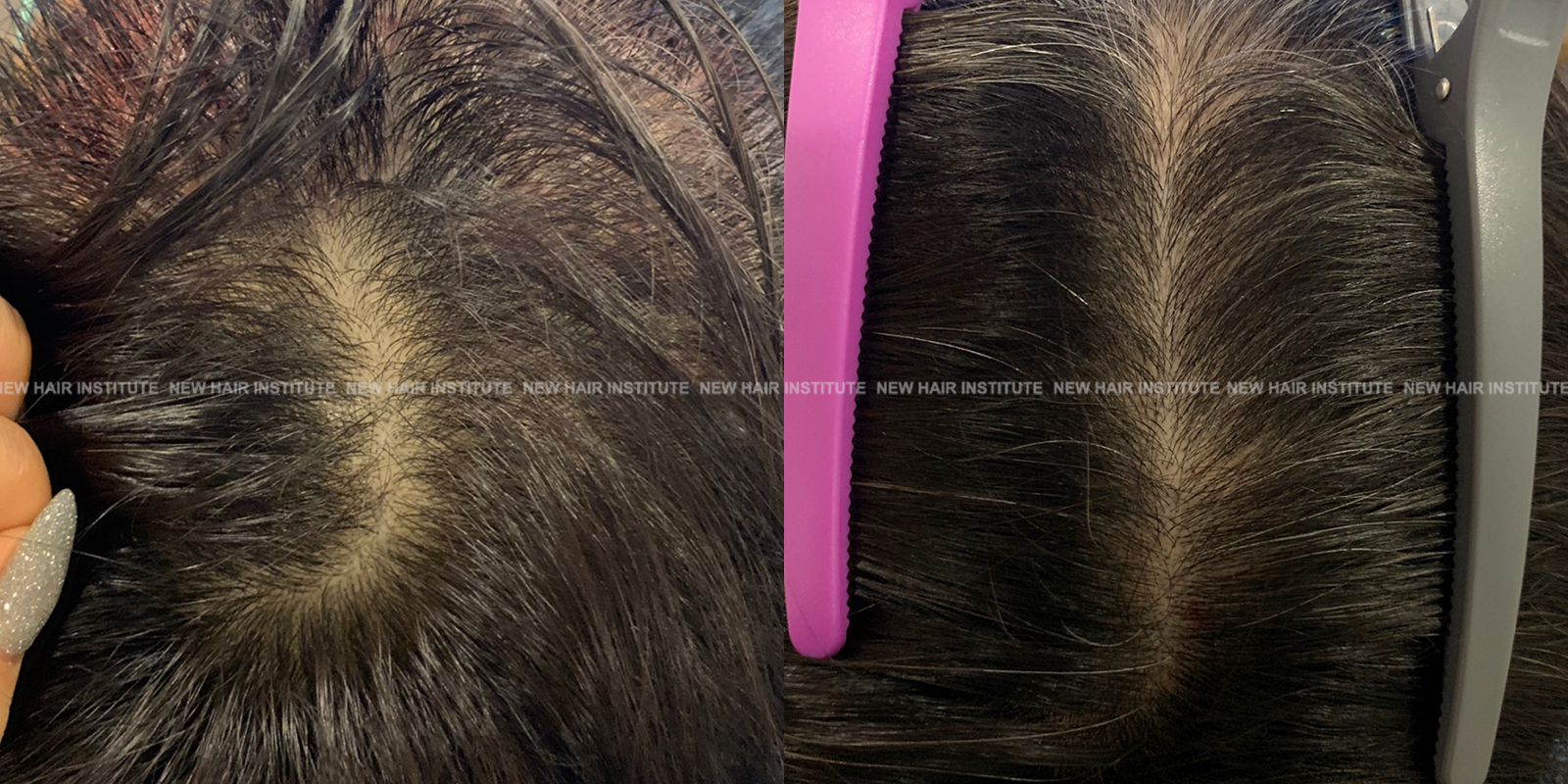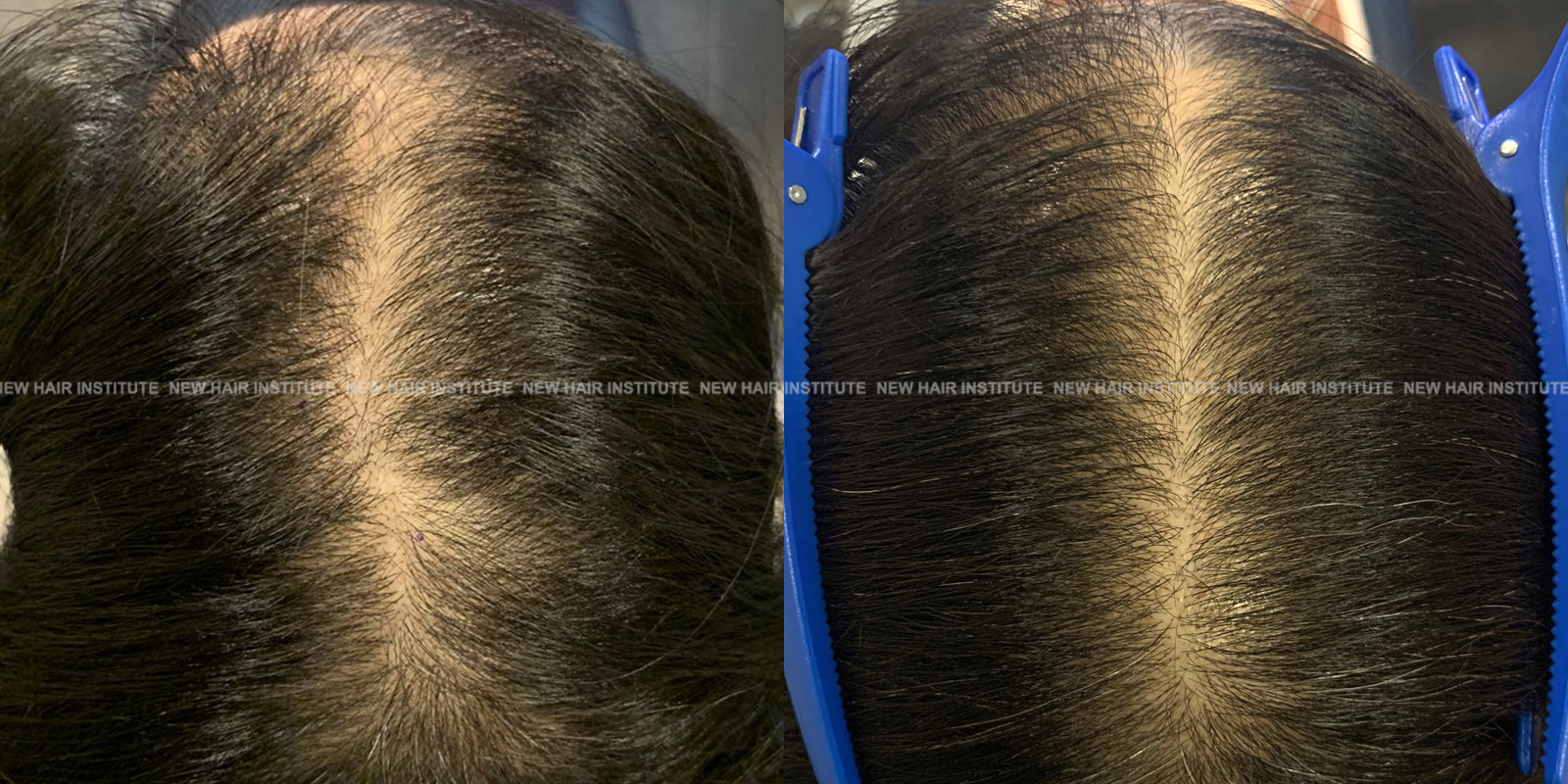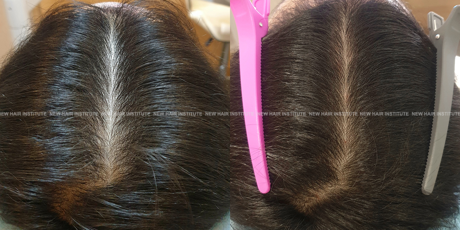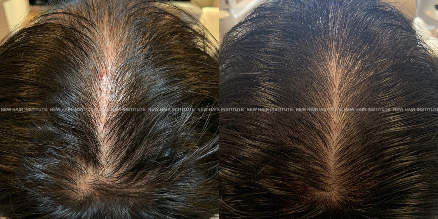확산성 탈모, 여성형 탈모, 스트레스성 탈모 등에서는 치료약의 종류가 남성에서보다 한정되기 때문에 모낭주사 치료의 필요성이 좀 더 높아집니다. 바르는 약 미녹시딜과 모발 영양제인 맥주효모 정도가 여성 탈모에서 쓸 수 있는 약들인데 이 약만으로 큰 치료효과를 기대하기는 어렵기 때문입니다. (아래 사례 사진에 여성 탈모 사례를 보실 수 있습니다.)