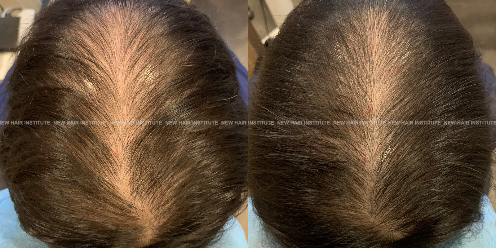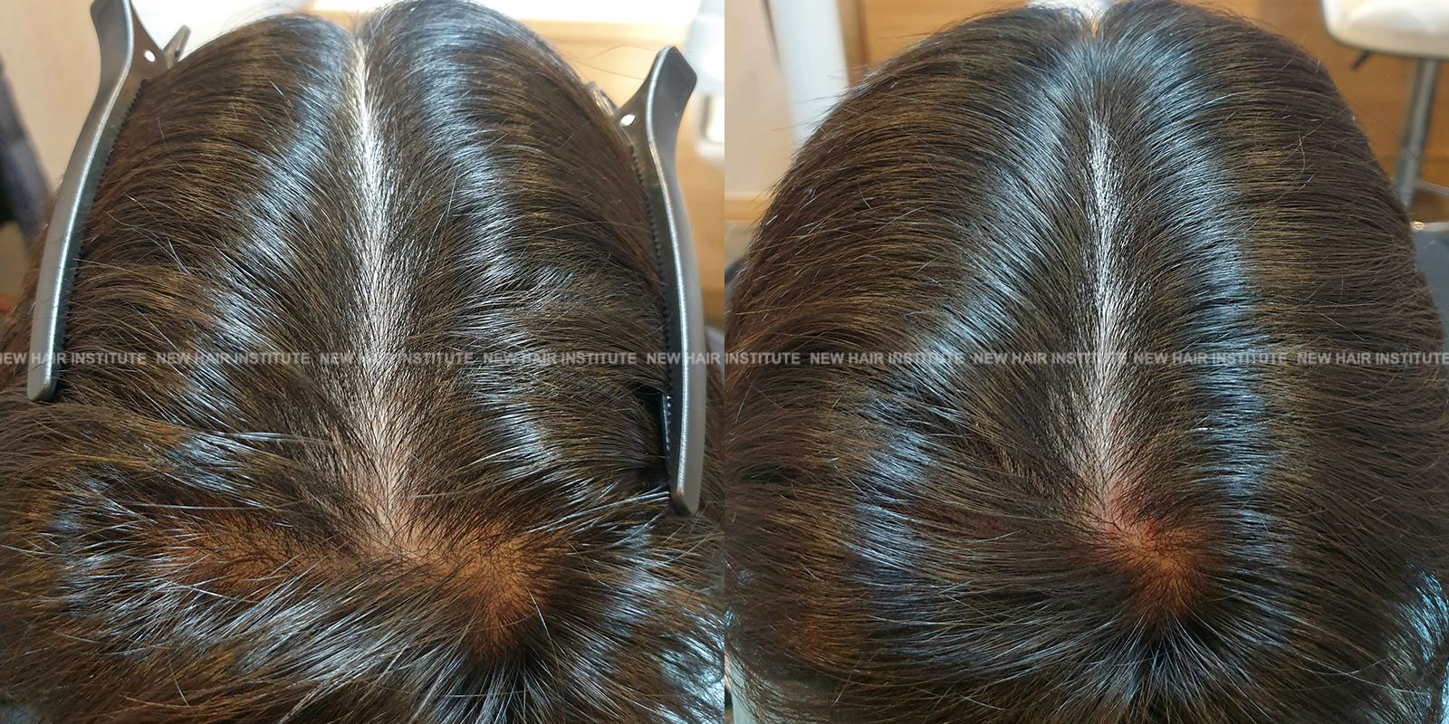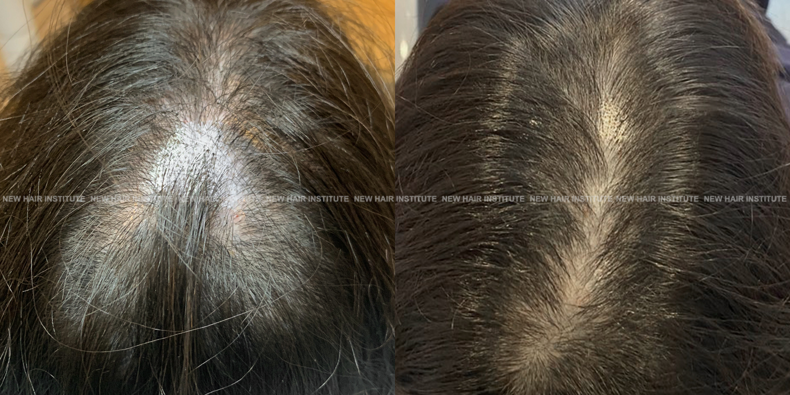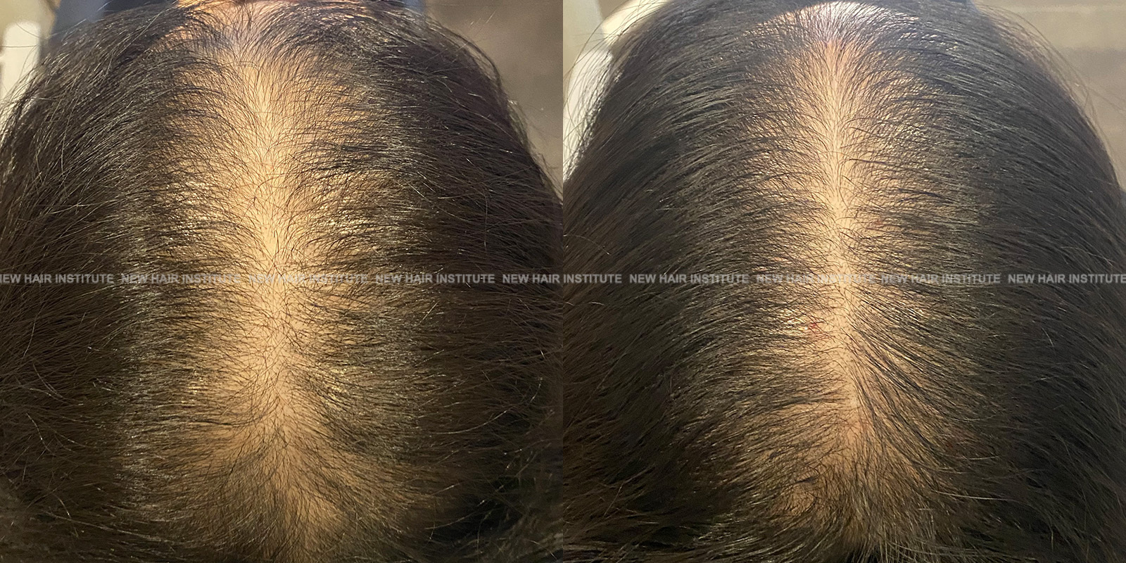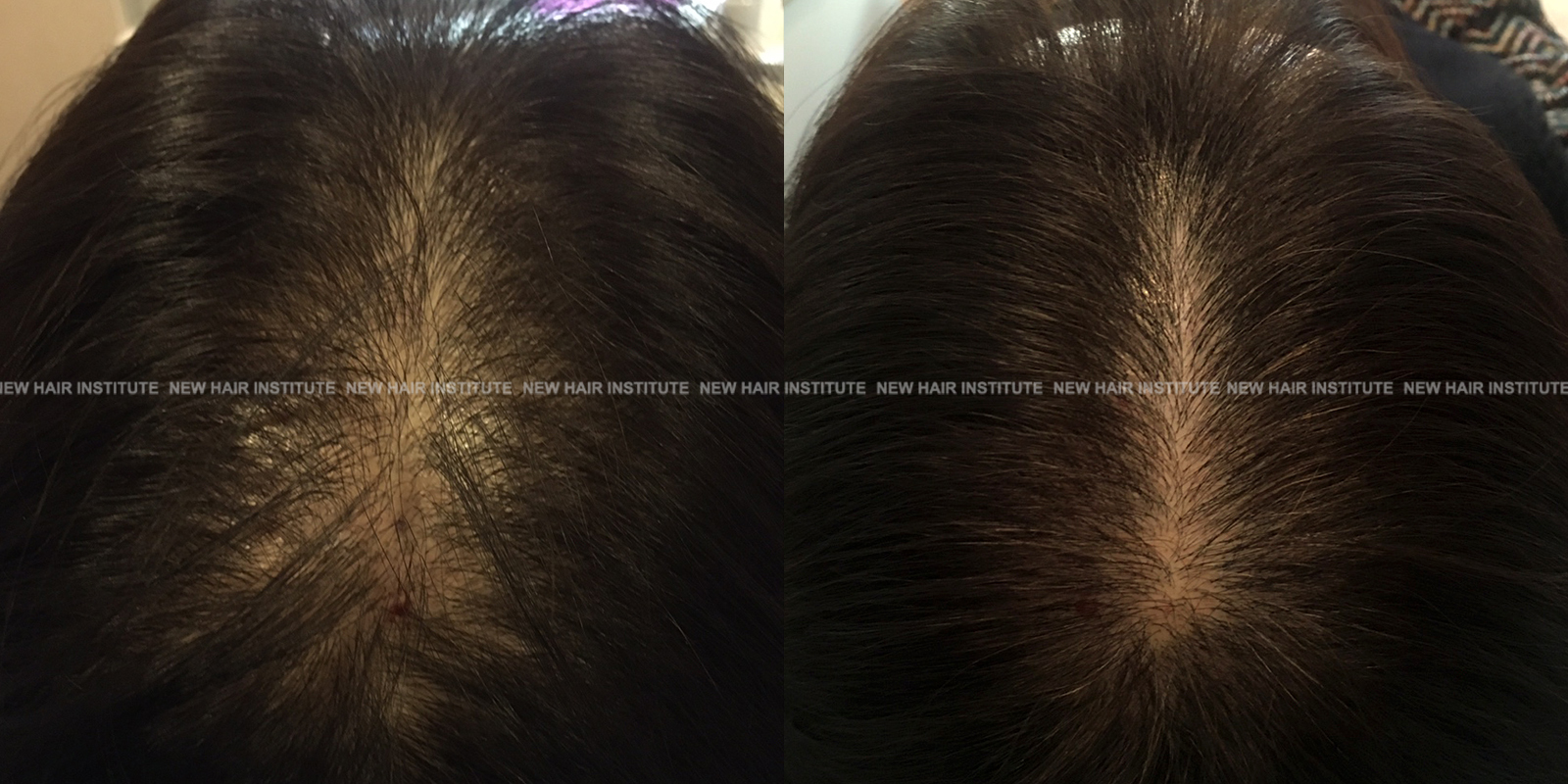 확산성 탈모, 여성형 탈모, 스트레스성 탈모 등에서는 치료약의 종류가 남성에서보다 한정되기 때문에 모낭주사 치료의 필요성이 좀 더 높아집니다. 바르는 약 미녹시딜과 모발 영양제인 맥주효모 정도가 여성 탈모에서 쓸 수 있는 약들인데 이 약만으로 큰 치료효과를 기대하기는 어렵기 때문입니다. (아래 사례 사진에 여성 탈모 사례를 보실 수 있습니다.)