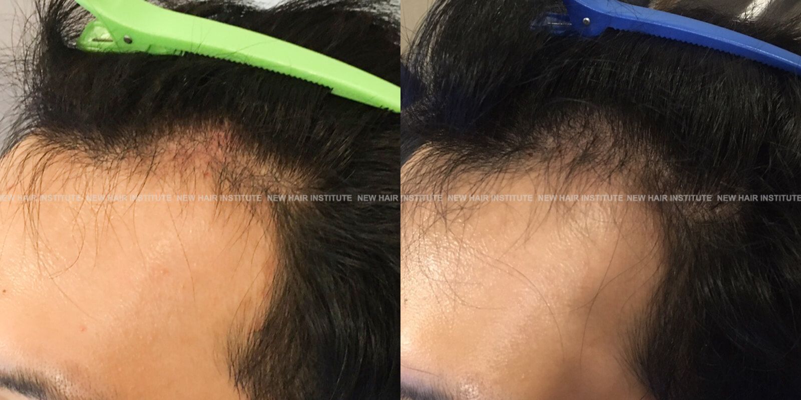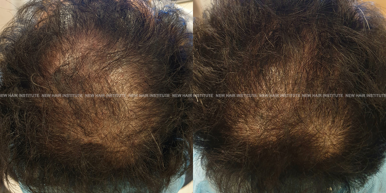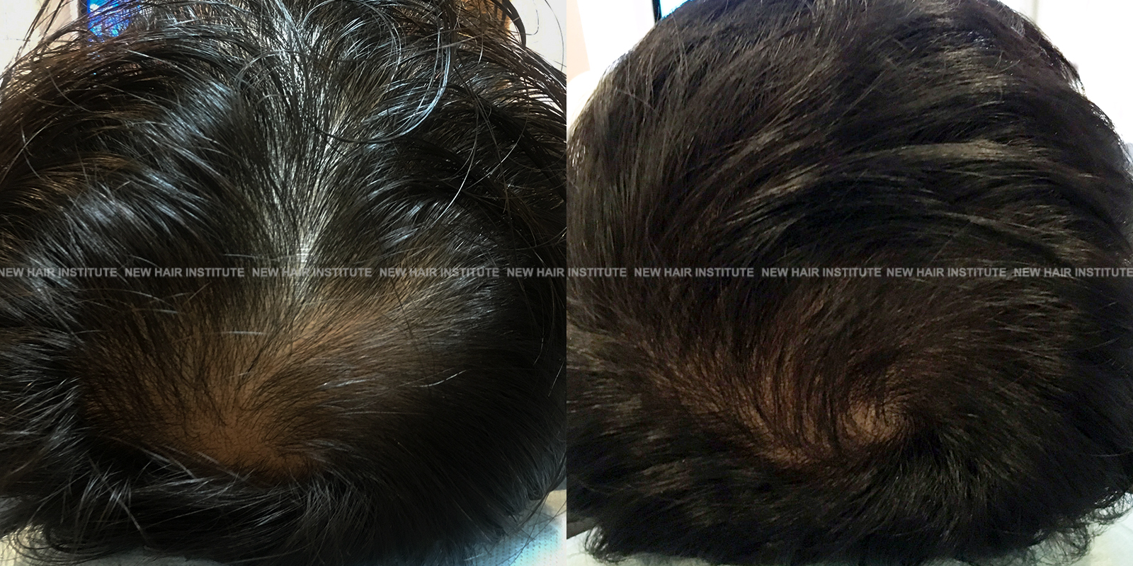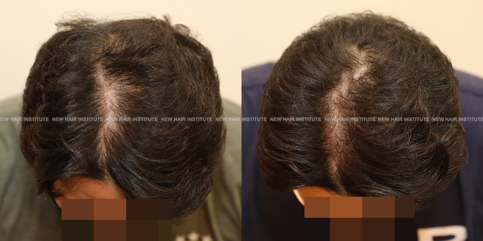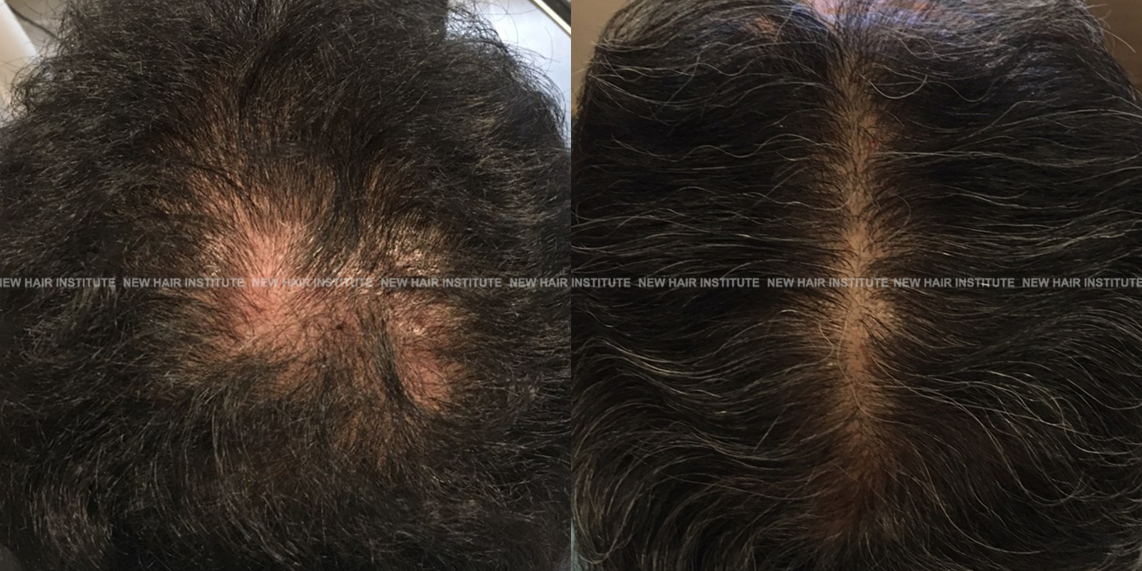특히 좋은 효과를 보인 33세 남성의 경우 치료 기간을 1년까지 연장했는데, 치료 시작 시점에서 Norwood 분류 6단계에 해당하던 상태가 크게 호전되어 헤어라인과 두정부 모두 상당한 모발이 자라난 것을 확인할 수 있습니다.