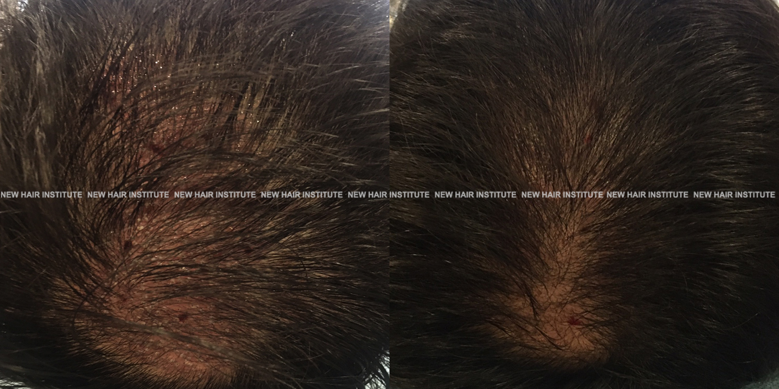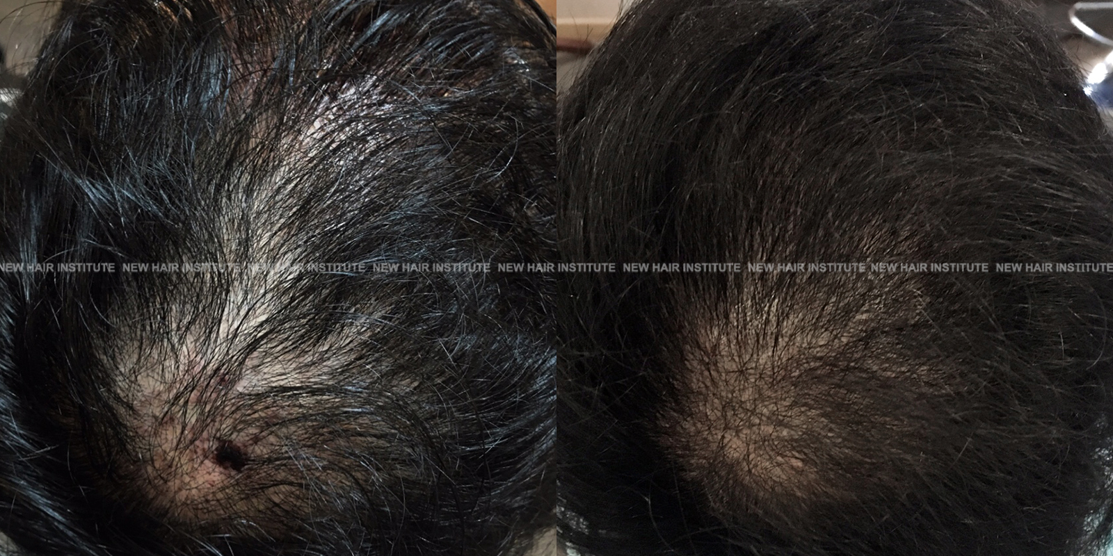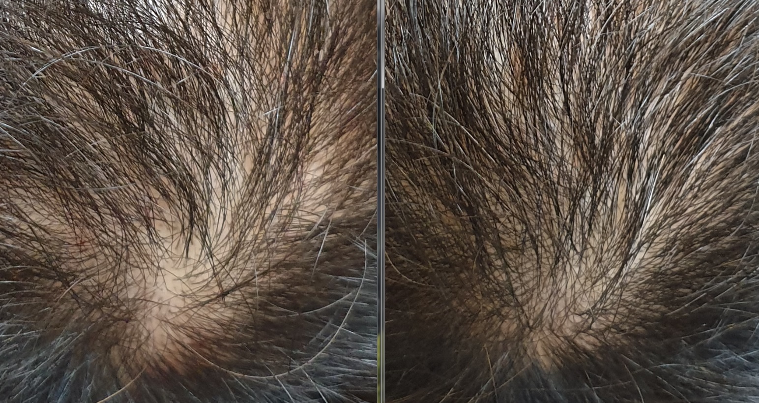 위 사진은 오랜 기간 탈모약(피나스테리드)을 드셔 오신 분인데, 그럼에도 불구하고 탈모가 진행되는 것을 느껴 추가적으로 엑스톡스 시술을 시행하였습니다. 가르마와 가마 부분을 보시면 차이가 느껴지실 것입니다.