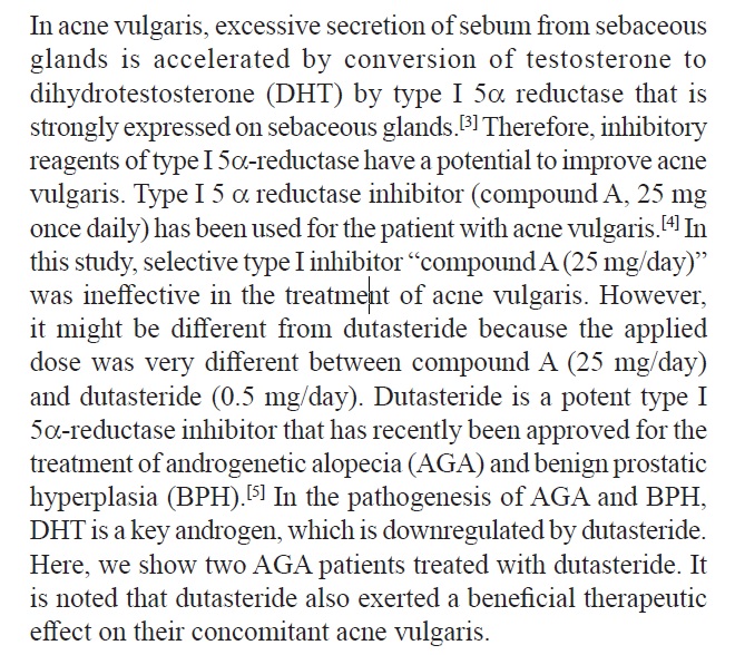 여드름 치료에도 두타스테리드가 효과적일 수 있다고 언급한 연구도 있습니다.