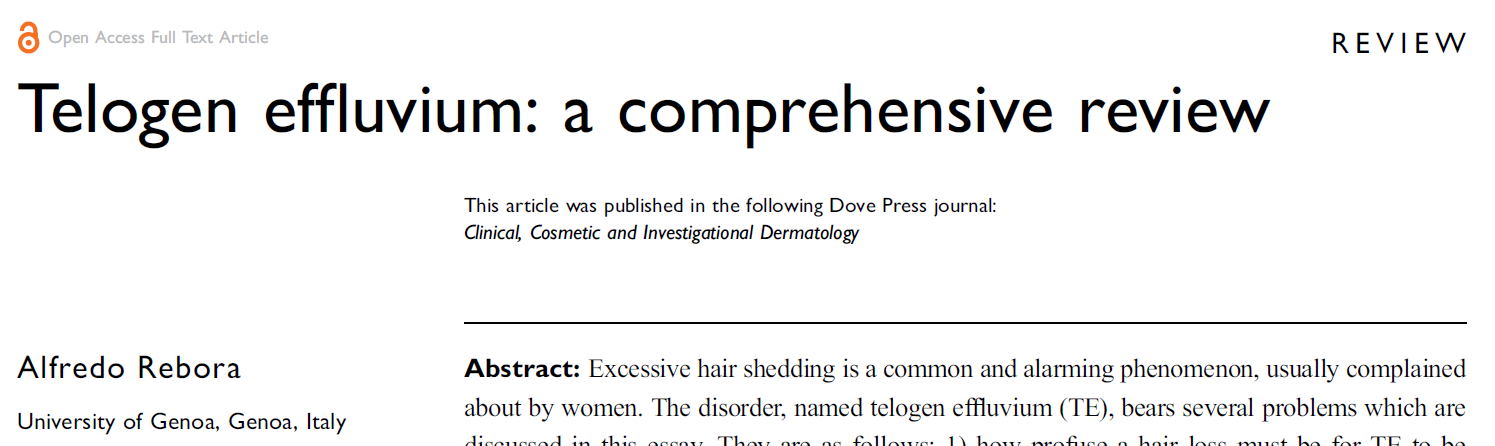 최근 휴지기 탈모와 유전성 탈모의 구별하는 방법에 대해 포스팅한 적이 있습니다. 흔한 증상이지만 유전성 탈모에 비해 주목받지 못하는 휴지기 탈모에 대해 꼼꼼히 설명한 리뷰 논문을 하나 소개해드릴게요.