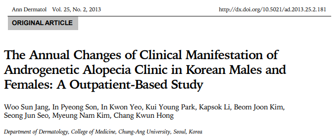 중앙대병원 피부과의 홍창권 교수님이 2013년에 발표하신 자료입니다. 탈모 치료를 위해 외래를 찾은 남녀 환자들이 보이는 증상을 조사했습니다. 우리가 관심있는 지루성 두피염에 대한 자료로 바로 넘어가보겠습니다.
