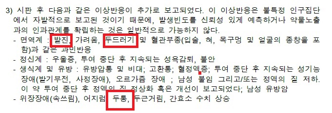 피부병이라고 하신 것은 발진, 두드러기, 여드름 등을 말씀하신 것 같아요. 여드름 등은 역시 드물기는 하지만 가끔 말씀하시는 분들이 있습니다.