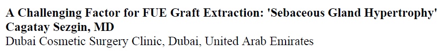 이 머리기름을 생산하는 피지선이 비절개 모발이식의 결과에 영향을 미친다는 보고가 있습니다. 세진(Dr. Catatay Sezgin)이라는 의사는 피지선이 발달해서 크기가 전체 모낭 길이의 1/3 이상이 되면 비절개 결과가 떨어진다고 발표했습니다. 2000개 이상의 모낭을 분석한 결과 피지선 비후 모낭들은 모발 채취 시 손상율(transection rate)이 높아졌습니다.