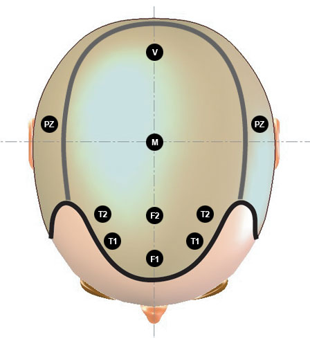 환자마다 탈모가 의심되는 영역이 다를 수 있고, 매핑 위치가 달라질 수 있지만, 유전성 탈모일 때 기본적으로 측정하는 위치는 앞머리, 앞머리 구석(cornor), 윗머리(top), 정수리(crown), 뒷머리 및 옆머리 부분입니다. 연모화가 시작되는 위치를 파악하면 탈모치료를 하지 않았을 때 어느 정도의 탈모 단계가 진행될 수 있을지 예상할 수 있습니다.