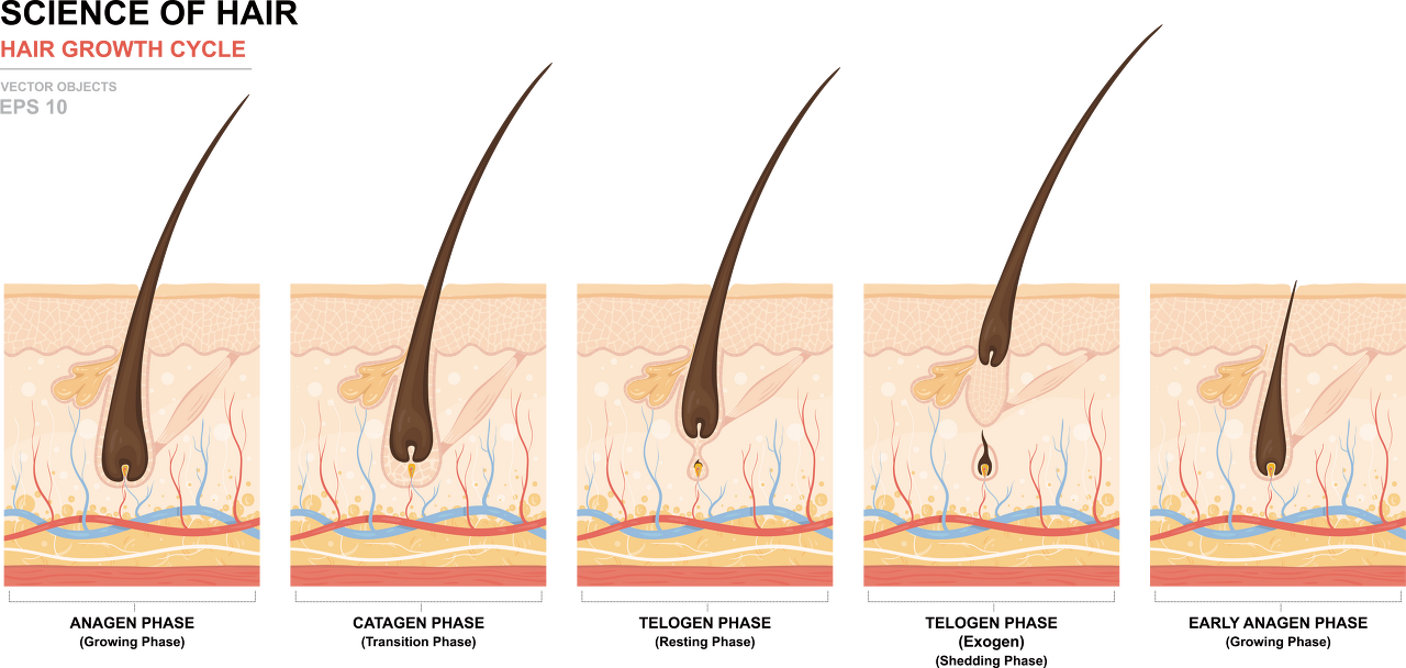 모낭세포도 평생 모발을 생산하고 있지는 않습니다. 우리가 매 여름마다 휴가를 가듯이 일정 시간 동안 머리카락을 만들어낸 모낭세포도 잠시 휴식을 취합니다. 그것이 바로 휴지기입니다. 성장기에 있는 모낭세포는 5년 정도 모발을 생산하다 퇴화기를 거쳐 휴지기에 들어가게 됩니다. 휴지기 모발은 더 이상 성장하지 않고 두피에 박혀있다 수개월이 지나면 자연스럽게 빠지게 되고 이후 새로운 성장기 모발이 자리를 대신합니다. 미녹시딜은 휴지기 과정을 단축합니다. 원래는 3개월 정도에 걸쳐 천천히 빠질 예정이었던 휴지기 모발이 빠르게 빠지고 아래쪽에서 새로운 성장기 모발이 올라오게 하는 것입니다. 그래서 초기에는 머리카락이 많이 빠지는 것처럼 보이지만 일시적인 현상에 불과하며 곧 건강한 모발이 다시 올라오게 됩니다. 2보 전진하기 위해 1보 후퇴하는 것입니다. (참고: 미녹시딜의 기전과 원리)