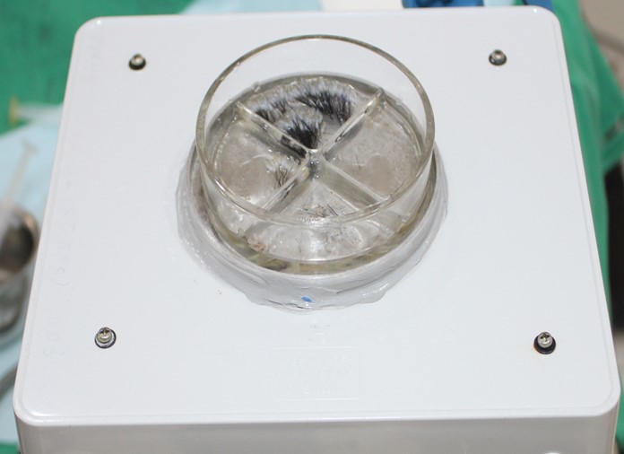 그런데 모발이식에서는 모낭을 분리하거나, 이식하는 중간과정에서 공기에 노출되어 탈수가 되거나 온도가 올라가는 과정이 있게 됩니다. 이를 줄이려는 노력들을 좋은 병원들에서 많이 해오고 있지만, 애초에 채취 후 이식까지 공기에 노출되는 시간을 없게 하고, 저온을 지속적으로 유지하게 하는 방법을 만드는 것이 좋겠다고 생각해서 홍익대학교 기계공학과 서정환 교수팀과 모발이식 단계마다 적용할 수 있는 4종류의 저온 수분 유지 장비를 개발하여 적용하고 있습니다.