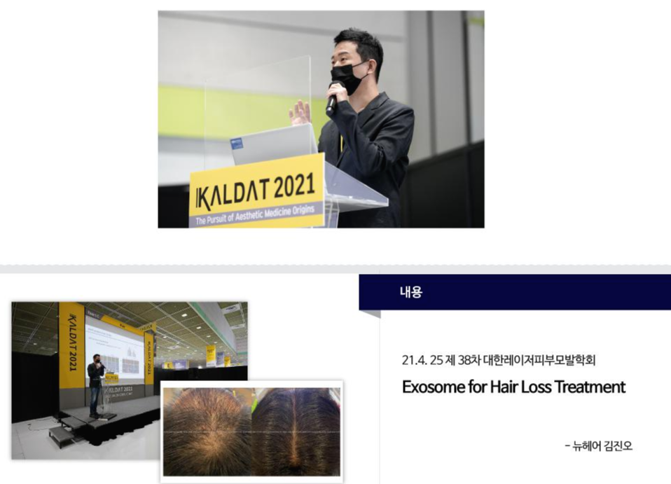 지난 2021년 4월 25일 코엑스에서 열린 대한레이저피부모발학회에서 저희 병원 의사 3명의 발표가 있었습니다. 각각 엑소좀, 두피문신, 탈모치료에 대한 내용이었습니다.
