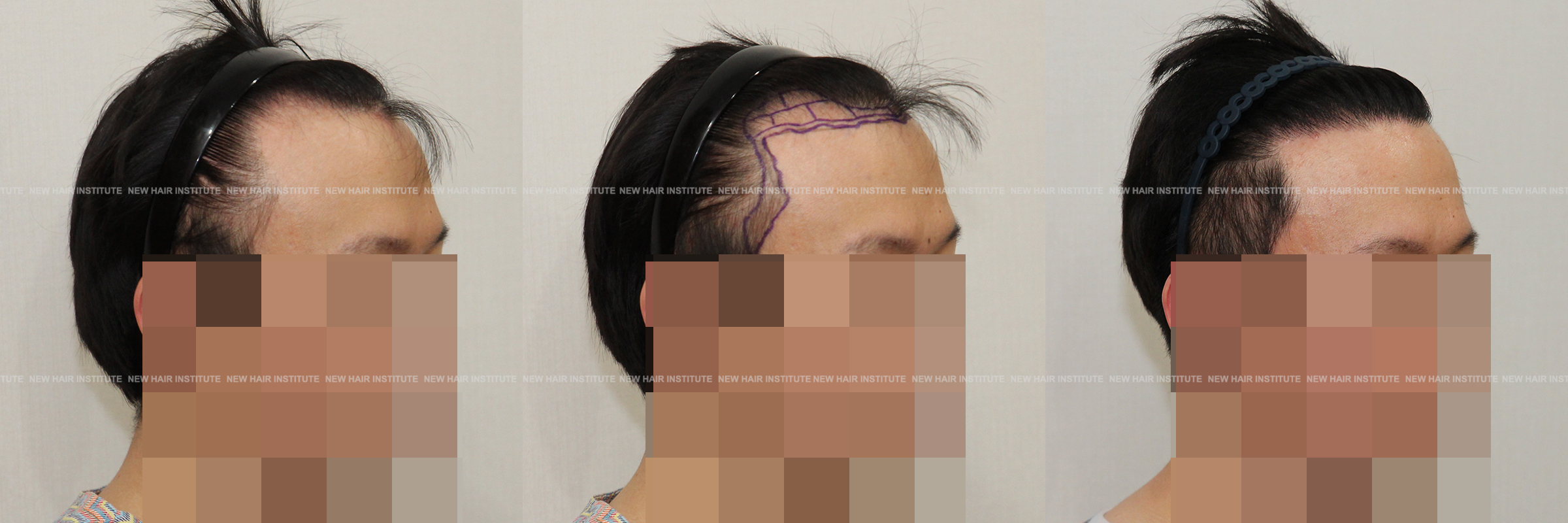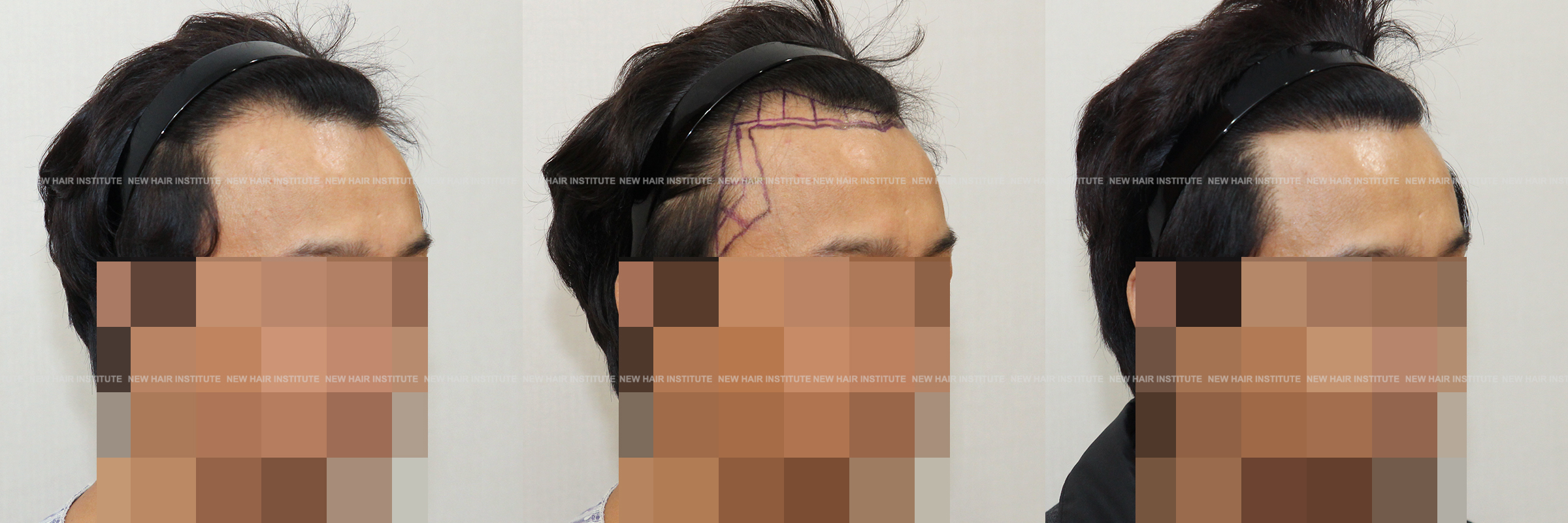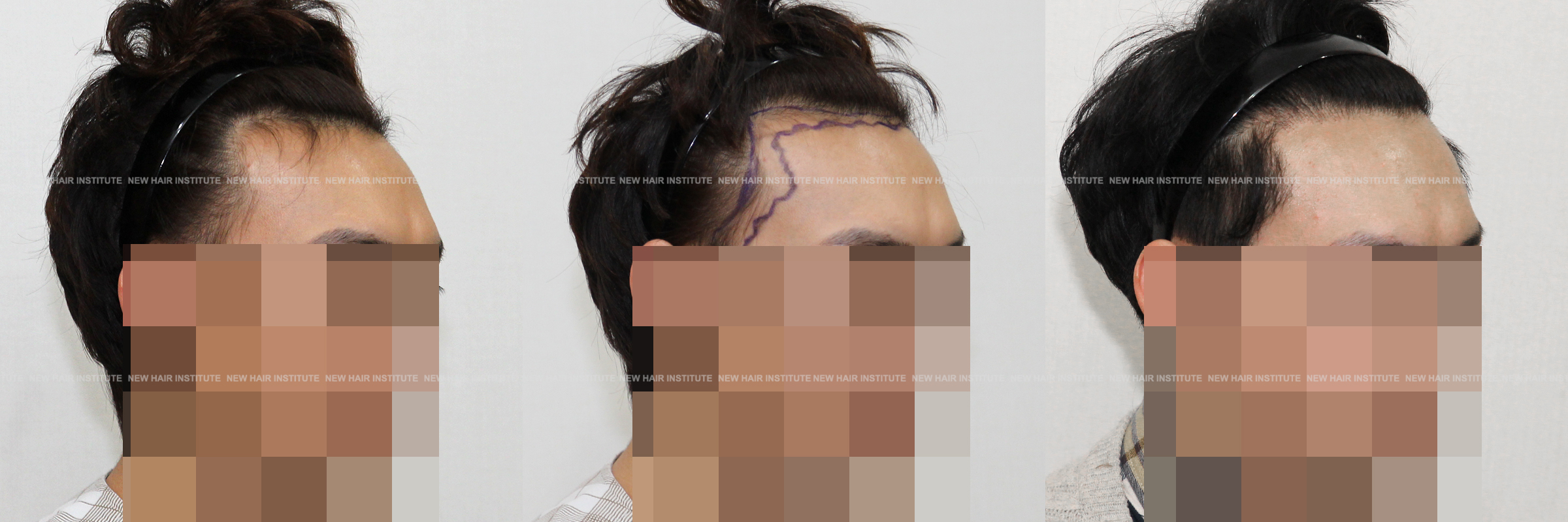 이마가 넓어서 모발이식을 하러 오신 분들 중에 이마의 상하 높이가 높지 않은 분들도 많습니다. 이때 좌우 폭이 넓다고 인지하시는 분은 많지 않으셔서 이마를 무조건 낮게 해달라고 하시는데, 높이 교정을 많이 하지 않고 측면 헤어라인 교정 만으로 좋은 결과를 얻을 수 있습니다.