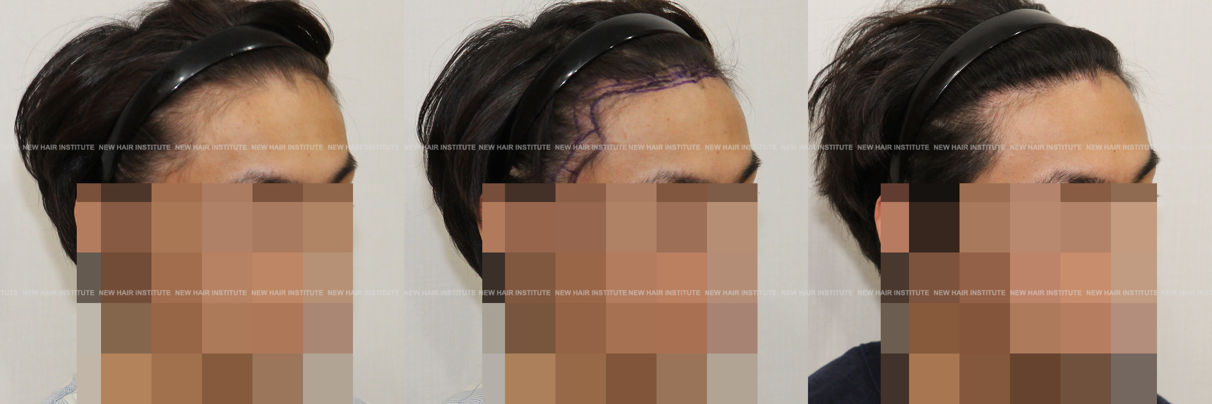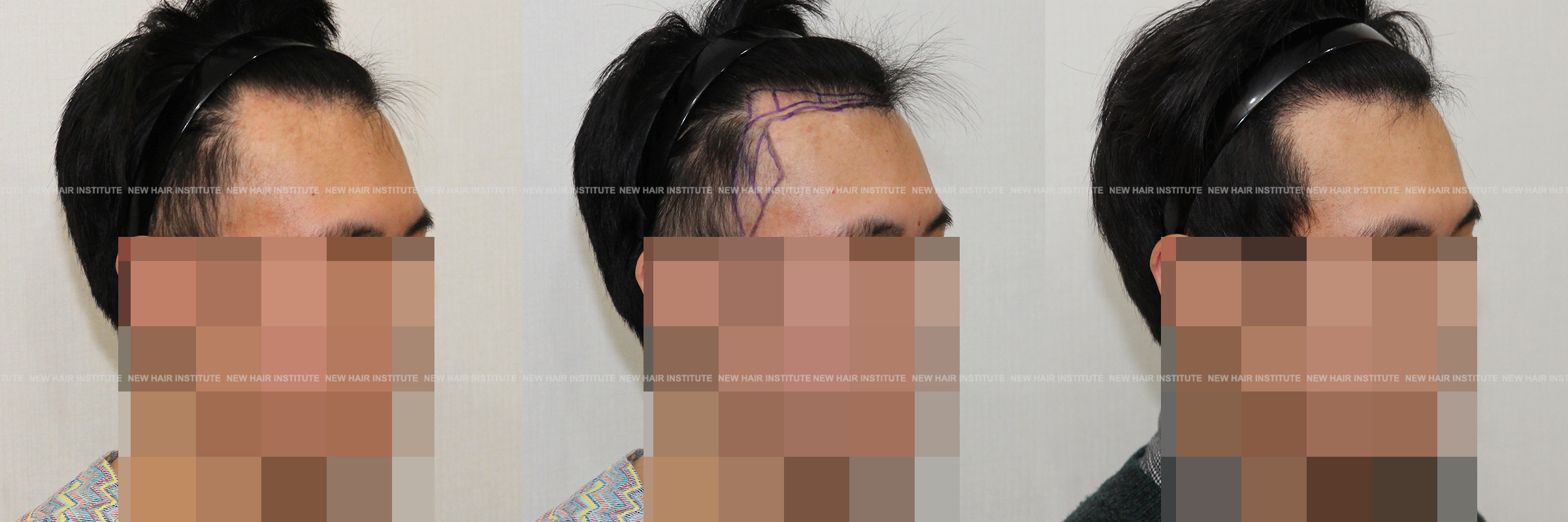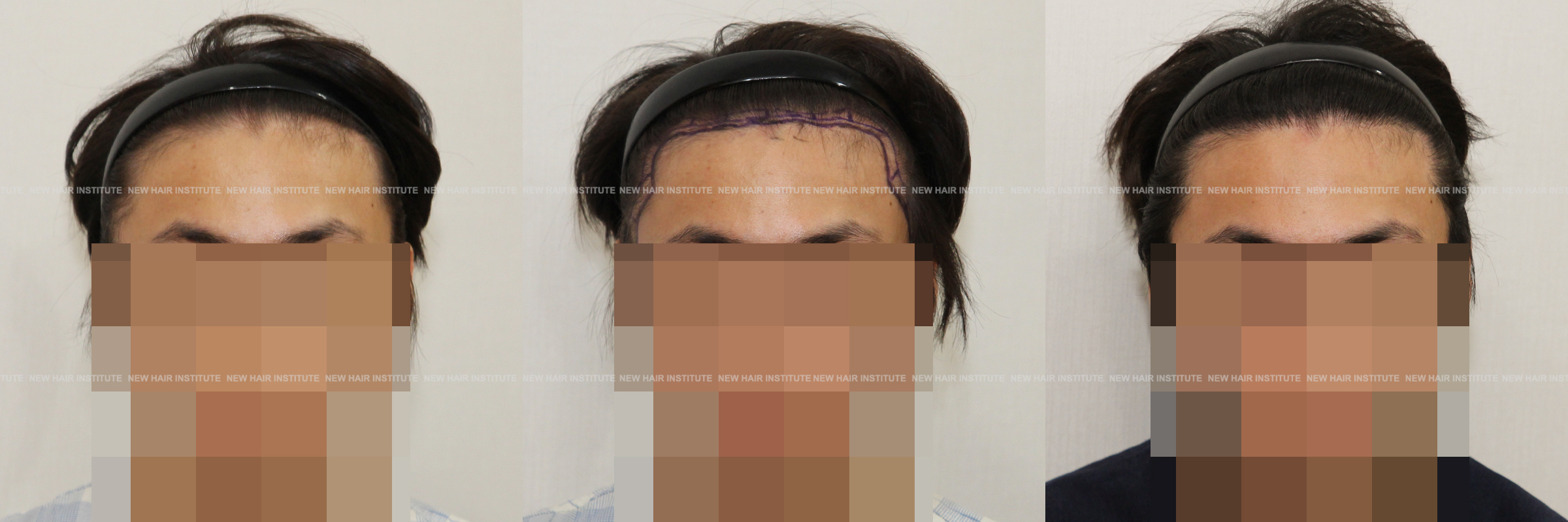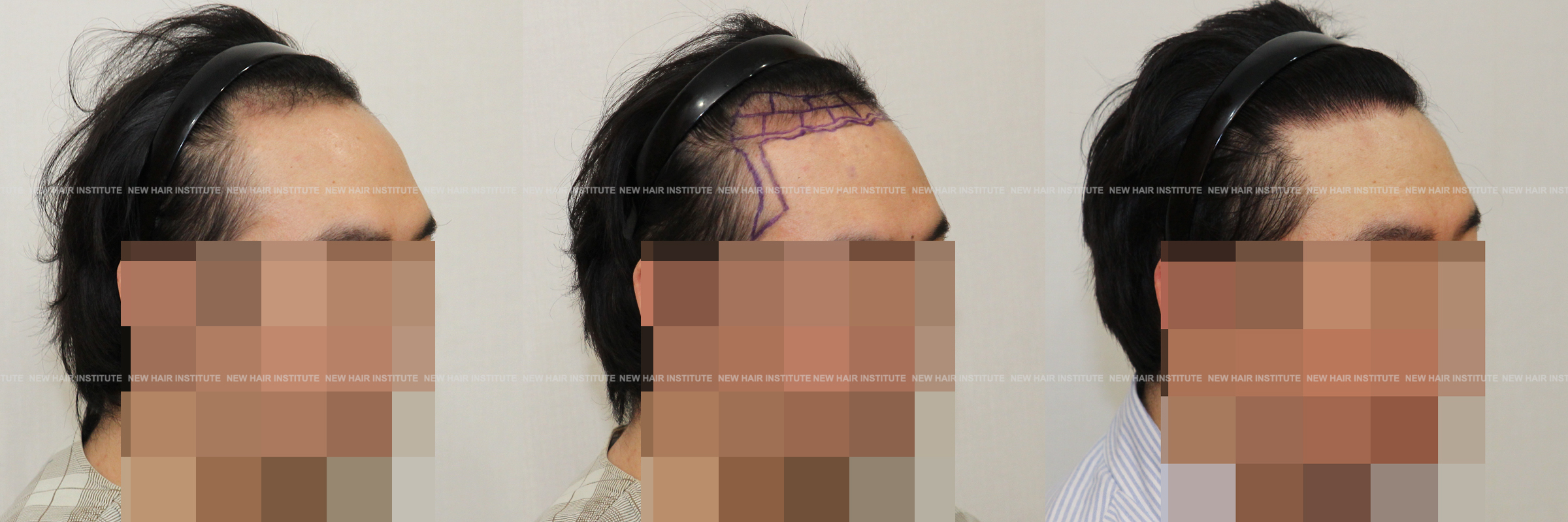 이마가 넓어서 모발이식을 하러 오신 분들 중에 이마의 상하 높이가 높지 않은 분들도 많습니다. 이때 좌우 폭이 넓다고 인지하시는 분은 많지 않으셔서 이마를 무조건 낮게 해달라고 하시는데, 높이 교정을 많이 하지 않고 측면 헤어라인 교정 만으로 좋은 결과를 얻을 수 있습니다.