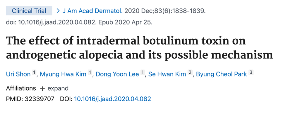 미용 목적으로 많이 쓰이는 보톡스가 탈모 치료에 효과가 있는지 여부를 보는 실험이 단국대 피부과 박병철 교수님 팀에서 진행 중이라는 이야기를 2년 전 소개해드린 적이 있습니다. 링크: 보
