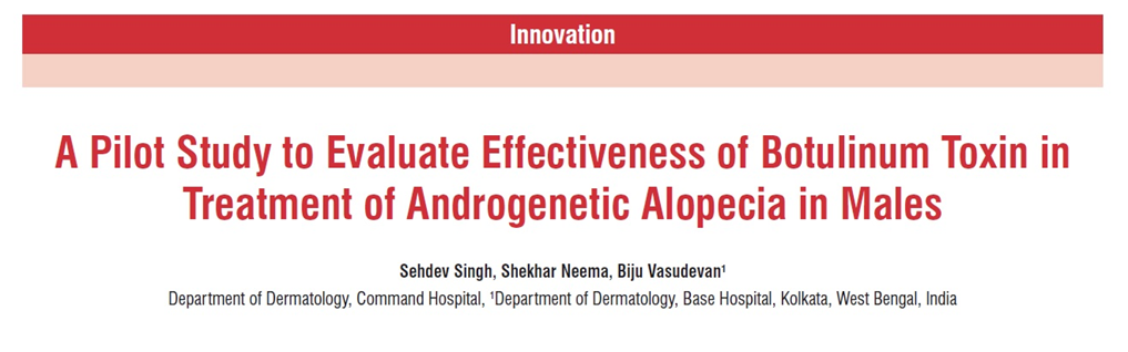 사실 10여 년 전부터 보톡스가 탈모치료에 효과가 있다는 연구들이 간간히 나오고는 했는데, 주로 원형탈모, 긴장성 두통으로 유발된 탈모, 눈썹탈모 등에서의 사례 보고 등이 거의 대부분이라 크게 주목을 받지는 못했습니다. 유전성 남성형 탈모(androgenic alopecia)에서 보톡스를 사용한 연구들을 살펴보겠습니다.
