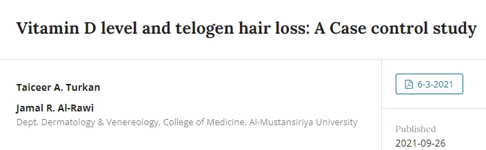 논문원문: Vitamin D level and telogen hair loss: A Case control study