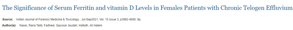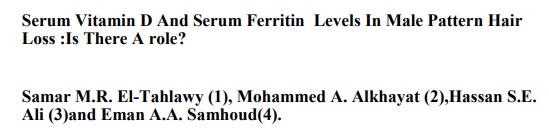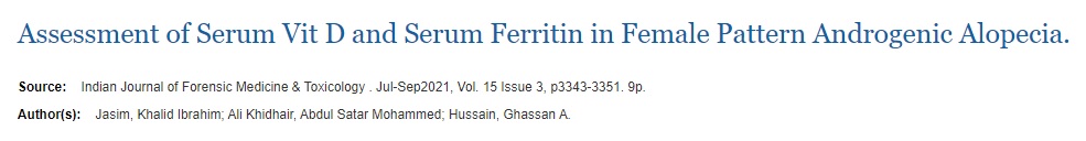 논문 원문: Assessment of Serum Vit D and Serum Ferritin in Female Pattern Androgenic Alopecia.