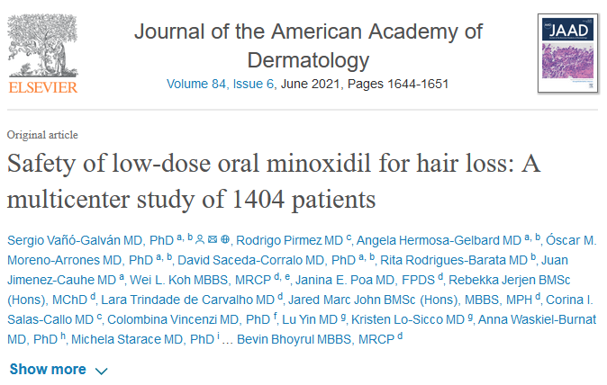 경구 미녹시딜을 저용량으로 사용하면 좋은 효과를 볼 수 있다는 점을 블로그를 통해 여러차례 알려드린 바가 있습니다. 그런데 미녹시딜이 경구제제로는 안정성에 관한 연구가 많지 않은 편이라 불안감을 가진 분들도 많이 있습니다. 저희 클리닉의 임상 경험을 돌이켜보았을 때 경구 미녹시딜의 안전성은 상당히 높은 편이라고 생각되는데, 그 사실을 뒷받침해줄만한 연구를 하나 소개해드리겠습니다.