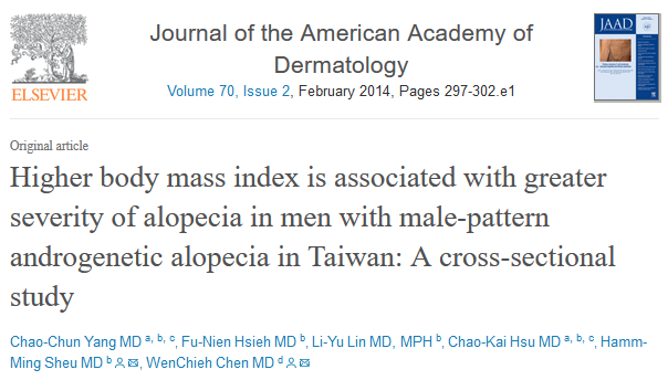 189명의 대만인들을 대상으로 탈모의 중증도와 비만 사이의 상관관계를 조사한 연구입니다. 결론으로 바로 넘어가보겠습니다.