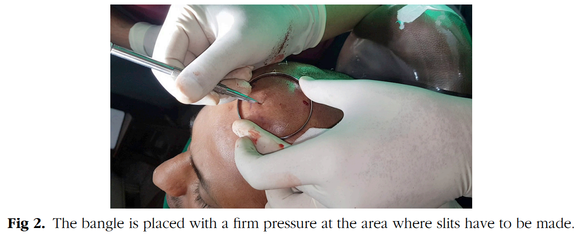 뱅글 팔찌로 수술 부위를 누르면 가운데 부분이 봉긋하게 튀어나오면서 슬릿의 각도가 변형될 위험이 있지 않을까 하는 궁금증이 생기기는 합니다만 적절한 사이즈의 팔찌를 꼭 필요한 만큼의 압력만 가해서 사용한다면 수술 시간을 10분이라도 단축시키는데 도움이 되지 않을까 생각됩니다.