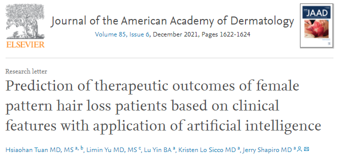 여성형 탈모 치료와 관련하여 인공지능을 이용한 의미있는 연구로서는 아마 이 연구가 첫 번째 사례가 되지 않을까 생각됩니다. 의사와 환자가 변화를 만들 수 있는 약물 치료, 즉 미녹시딜, 피나스테리드, 스피로노락톤이 치료 결과에 끼치는 영향이 예상보다 적고 유병 기간이나 발병 시점 등 컨트롤 불가능한 변수가 더 중요하다는 결론을 보니 흥미롭기도 하지만 동시에 씁쓸한 기분이 들기도 합니다.