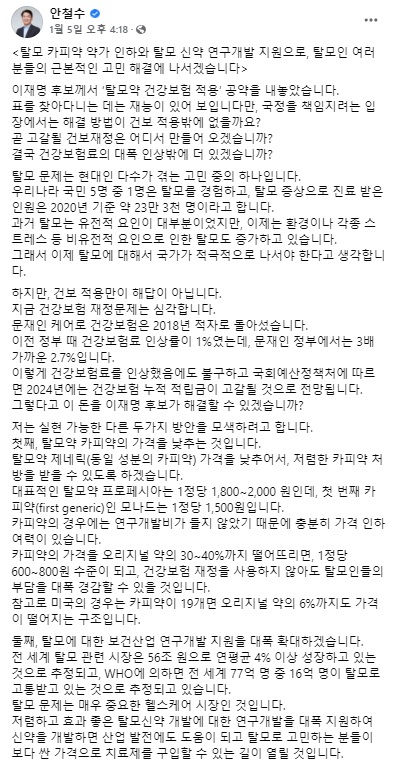 며칠 전 이재명 민주당 대통령 후보가 탈모약 보험 적용을 공약으로 고려하겠다는 발표 이후 탈모 관련 사이트 이곳저곳이 시끌시끌합니다.