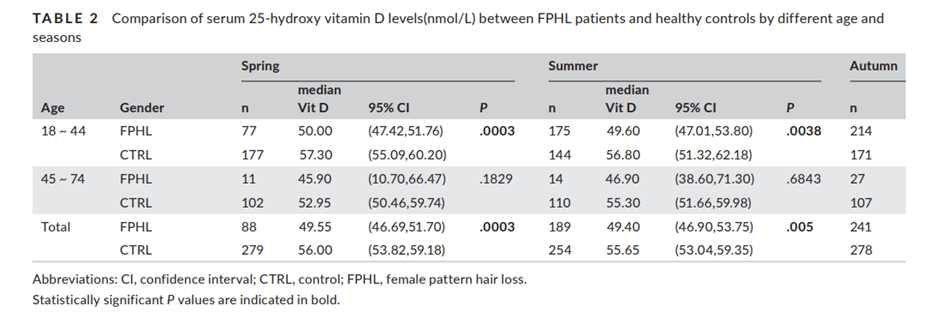 2. 표본이 적기 때문에 더 많은 연구가 필요하겠지만, 비타민D 보충이 탈모개선에도 긍정적인 결과를 보일 수 있겠습니다.