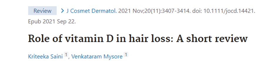다음에 보실 논문은 작년, 2021년 11월에 나온 리뷰 논문입니다. 비타민D 보충의 탈모치료 효과에 대한 연구의 필요성을 확인할 수 있습니다.
