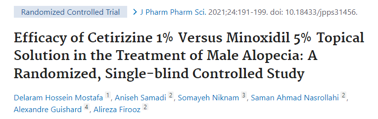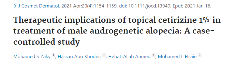 프로페시아, 아보다트, 미녹시딜 같은 치료제에 더하여 세티리진 같은 항히스타민제 역시 탈모 개선에 유의미한 효과가 있었다.