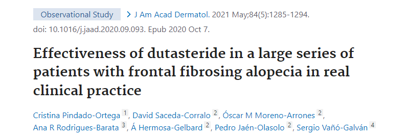 물론 이 연구 논문은 후향적 분석이기도 하고 피나스테리드 복용 군의 표본이 적다는 것이 아쉬움으로 남긴 합니다. 플라세보 대조군도 부재하구요, 따라서 근거 레벨이 높은 연구가 아니긴 하지만 현실적으로 여성 탈모 환자군에 허락이 되는 범위 내에서는 좋은 연구이며 충분히 참고해야 할 데이터입니다. 그러니까 세계에서 가장 저명한 피부과 학회지인 미국 피부과 학회지에 실렸겠죠?ㅎㅎ