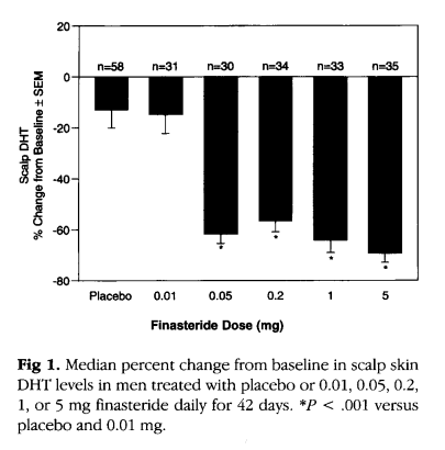 플라세보 군, 피나스테리드 0.01, 0.05mg, 0.2mg, 1mg, 5mg