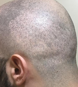 또 대량이식을 하시고 민머리 스타일의 짧은 머리 스타일을 원하시는 분들 역시 위 사진처럼 흉터가 눈에 띌 수 있습니다. 비절개 모발이식이 흉터가 없는 수술로 이해하셨던 분들은 당혹스러우실 수 있습니다.